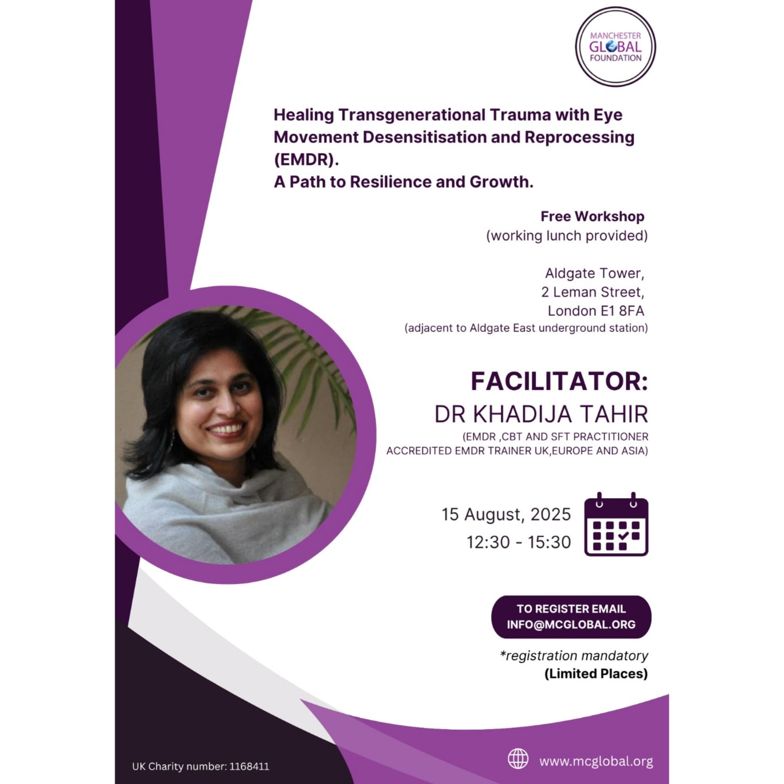 Join internationally accredited EMDR trainer Dr Khadija Tahir for a transformative afternoon of trauma healing and personal growth in London.
